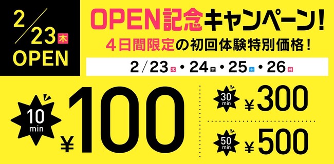オープン記念で2月23日~26日限定でセルフ脱毛を10分100円~体験いただけるキャンペーンを開催☆