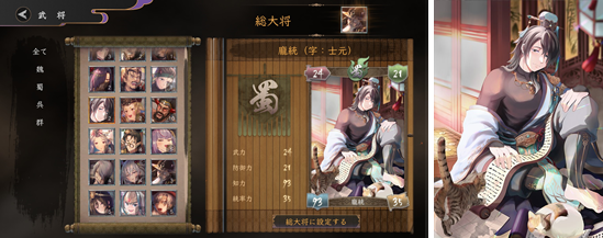 三国武将と共に攻守のバランスを考え自由に陣形を組んだり、武将を召喚し美麗な武将カードを収集、戦いで勝った報酬で兵器や計略を購入することで戦略の幅が広がっていくゲームです。
