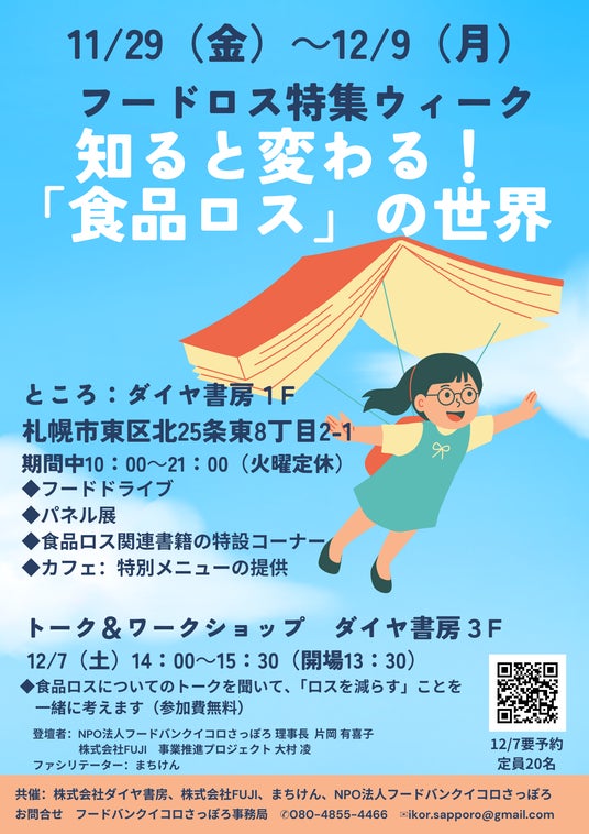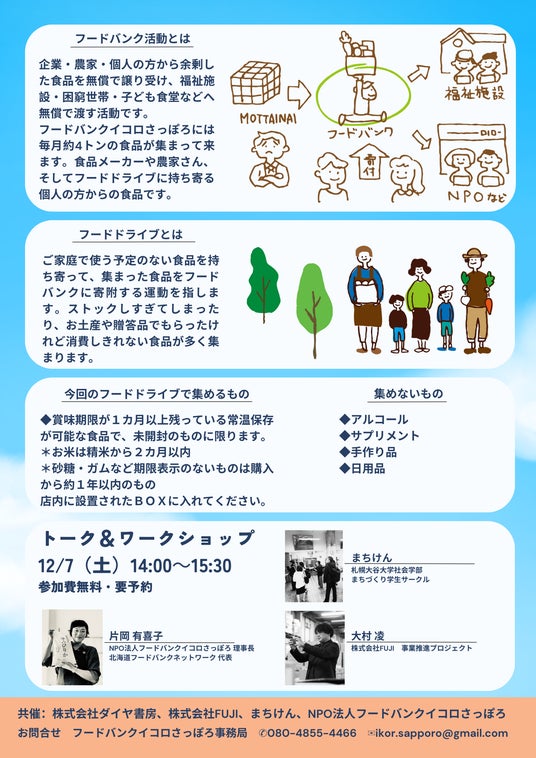 共催:株式会社ダイヤ書房、株式会社FUJI、まちけん、NPO法人フードバンクイコロさっぽろ