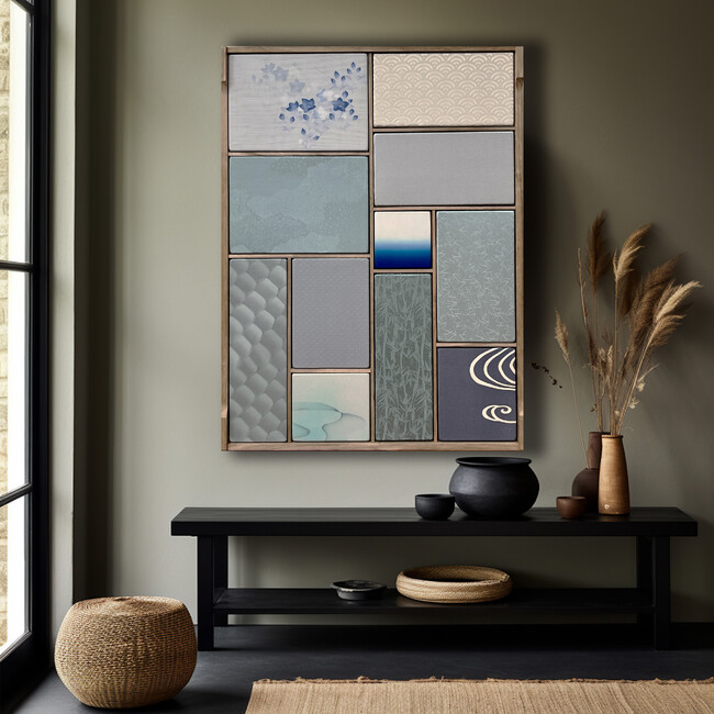 ikasu upcycles antique and vintage kimono that have served their purpose as clothes, creating new value as art pieces. ikasu takes the gorgeous woven and painted patterns of kimono and obi and turns them into stylish, elegant wall art that combines the traditional with the modern. Blending the fabric with antique kiritansu (chest-of-drawers for kimono) wood, natural materials like branch slices, and traditional gold foiling techniques to imitate kintsugi, ikasu creates art sets and collages that would add not only a unique touch, but also a meaningful symbolism to the interior.