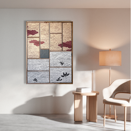Okamoto Lena, ikasu creative director with a degree in Japanese culture studies, selected the traditional patterns and motifs that symbolize love, passion and romance in Japanese tradition, to create art sets and pieces that are meant to bring harmony and romantic atmosphere to places and to people who own them.