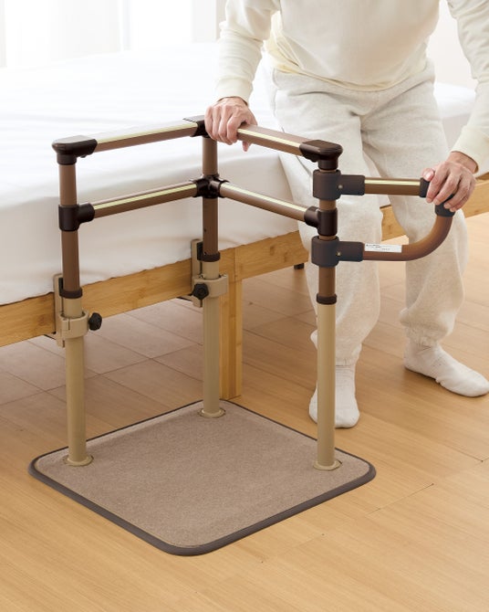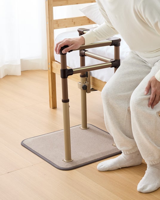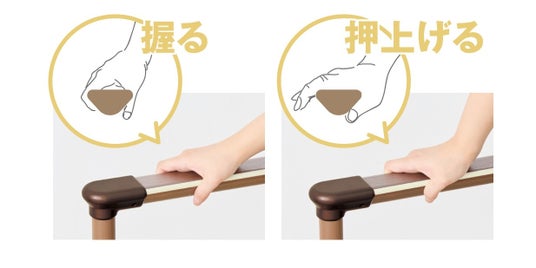 手すり棒をぎゅっと握ることも、手の平や肘で支えてプッシュアップすることも可能です。