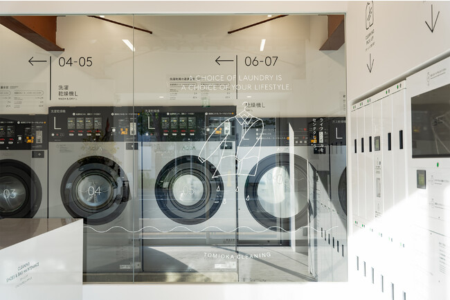 住宅街に位置し、広い駐車所も完備している利点や地域性を活かし、洗濯の待ち時間を有効利用いただけるよう、館内にはコインランドリーのほか、雑貨店、カフェスタンド、衣類や皮革製品のメンテナンス受付カウンターも集約させた施設をオープンするに至りました。またワークショップスペースも完備し、地域の集いの場に。洗濯にまつわるワークショップや、地域の作家やアーティストによるワークショップなどを企画・開催を予定しています。また観光スポットにも近く、ご旅行のお客様にも楽しんでいただけるコンセプトになっています。