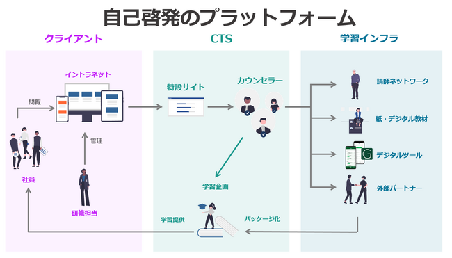 CTSは、もともと旧来型の語学研修をメインに行ってきましたが、コロナを機に「LXデザイン」の概念を組み込んだ学習ツールのプラットフォームである「語学サポートデスク」を新しく展開しました。