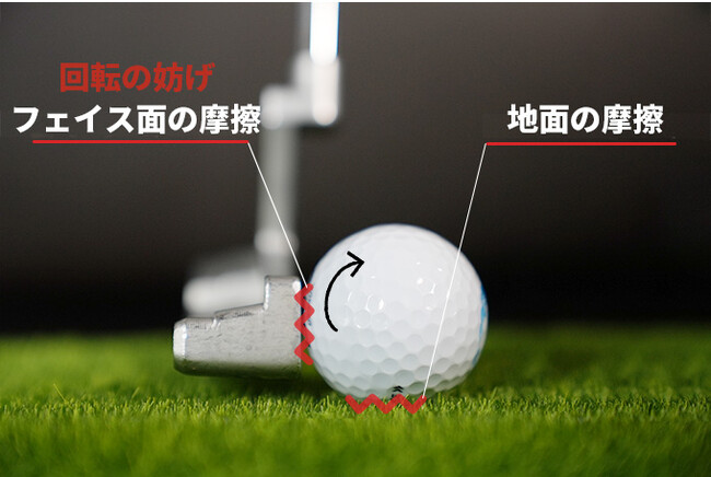 パターのフェイスに低摩擦のテフロン加工プレートを内蔵し、ボールとの摩擦を低減します。