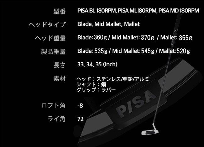 マイナスロフトのパターはPISA社が開発、製造するパターです。
