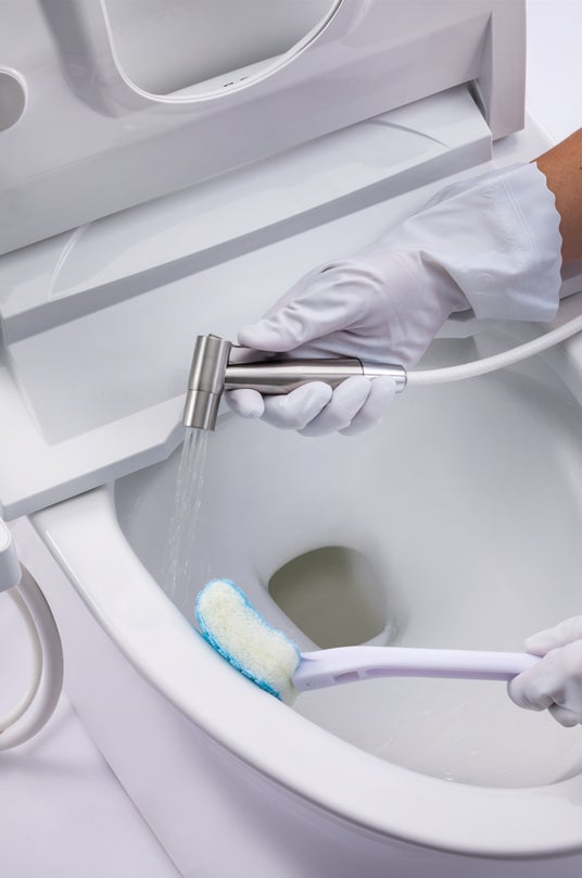 温水シャワーが内蔵されたことによりオストメイトの方のパウチ洗浄や要介護者の方への陰部洗浄、汚れた排泄機器の洗浄、トイレ内のお掃除にお使いいただけるようになります。また、便座表面には、抗菌・抗ウイルス樹脂を採用し、衛生面にも配慮しております。