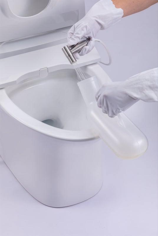 オストメイトの方は、身体に装着したパウチから排泄物を処理する際に便座から立ち上がり、それらを便器などに排泄する際の中腰による身体への負担、便座や便器、衣類などを汚してしまう不安等がありました。