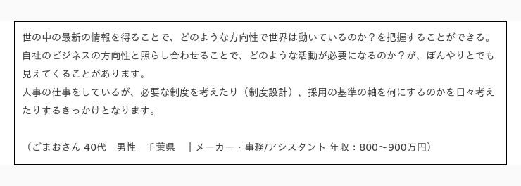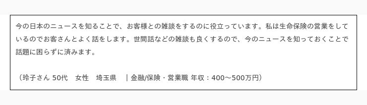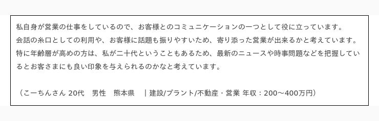 ニュースが「仕事上のコミュニケーション」に役立っていると答えた人のコメント抜粋
