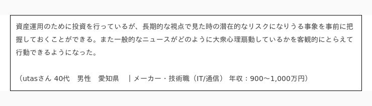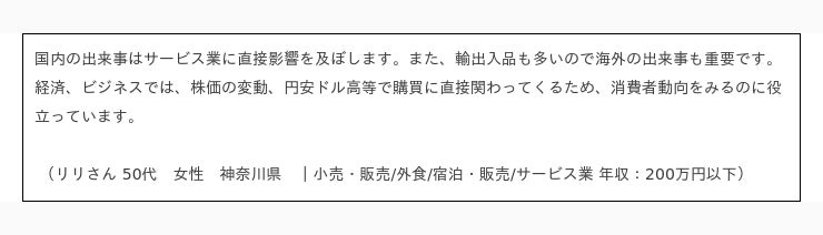 ニュースが「事業の戦略立案・企画立て」に役立っていると答えた人のコメント抜粋