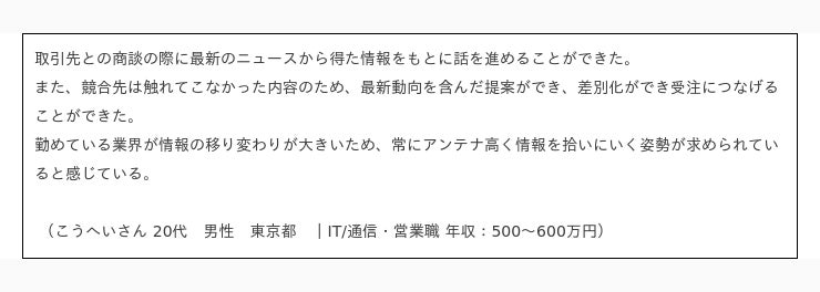 ニュースが「業界動向・トレンドの把握」に役立っていると答えた人のコメント抜粋