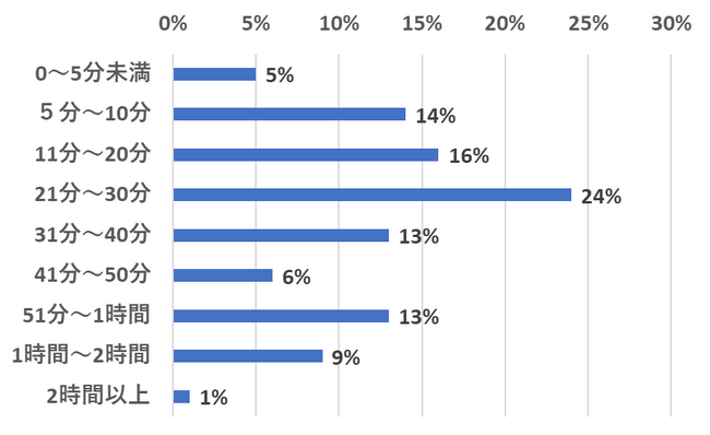 「1日にニュースをどのくらいの時間見ますか?」という質問に対して、最も多かった回答は「21分~30分」(24%)でした。