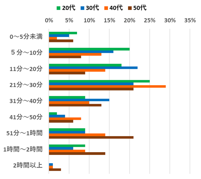 「1日にニュースを見る平均時間」年代別の分布