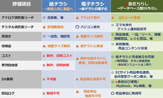 紙・電子チラシサービスとCXチラシ「e食住ちらし」のメディア特性の比較