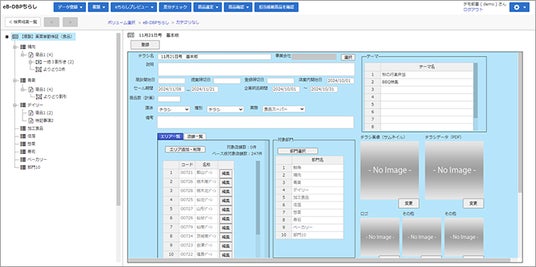 商品画像、ブランドロゴ、売り場画像、アイコン画像等一元管理、タグ付けやフォーマット変換も支援します。「eB-DBPちらし」と連携し、最新商品画像の自動挿入などチラシ画像入稿運用のQCD向上を実現します。