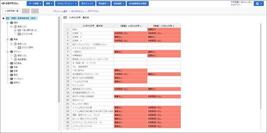 小売向けMDM(Master Data Management System)「MDM eBASE」の特売商品「eB-MDM/SA」は、チラシ掲載商品を含め、特売商品の商品情報、商談情報、価格・ロット等の商談結果を一元管理します。それらの情報をチラシ企画情報管理システム「eB-DBPちらし」と小売の基幹システムとの連携運用を実現します。