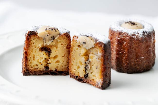 カヌレの内部にもアールブレイの茶葉がトッピングされています。最後まで紅茶の奥深い香りと、クリーミーな味わいが続き、ティータイムを引き立てます。