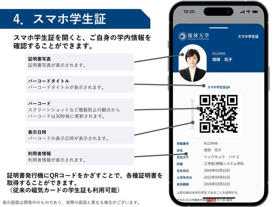琉球大学では従来のカード型の学生証をまとめて短期間で発行していたため、カードの発行・再発行や回収などの対応が教職員への業務負担となっていました。教育・学生支援の取組として、磁気カードで発行している学生証を当社のスマートフォンアプリによってデジタル化することにより、学生の利便性の向上及び教職員の業務効率化を実現します。