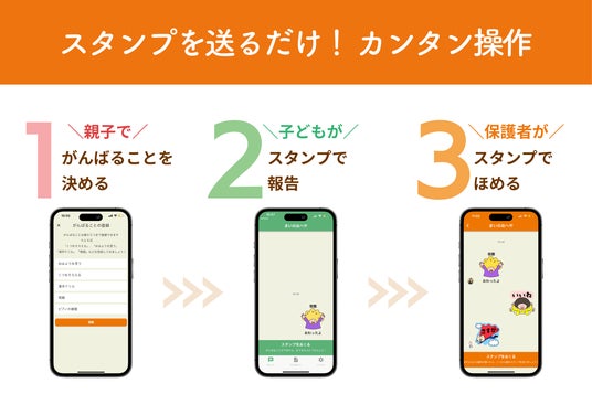 3. スタンプで褒める: お子様ががんばったことに対して、ご家族がスタンプですぐに褒めてあげることができます。