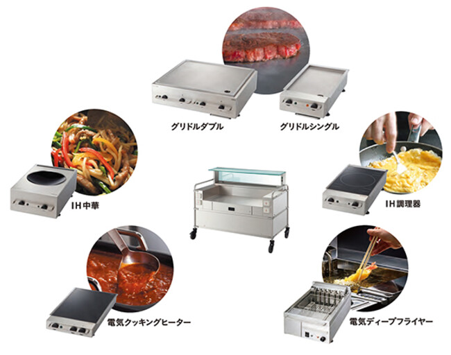 また6種類の調理機器をカセット式で組み替えて使用できるので、今日はステーキ、明日は中華、明後日はイタリアンと、この1台で様々な料理に対応できます。