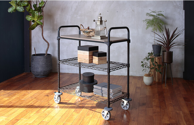 ホテルやレストラン、飲食店向けの什器としてのニーズにお応えするベーシックシリーズを展示。物販台、サービスワゴン、下膳台、デシャップ台など様々な用途に対応します。