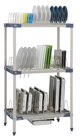 メトロマックス4のオプショナルパーツ「ドライングラック」は、洗い終わった調理器具が接触しないよう、調理器具の間に空気が通過するための十分なスペースを確保できます。