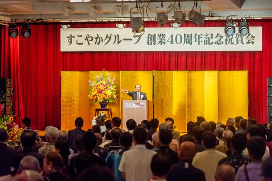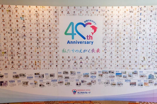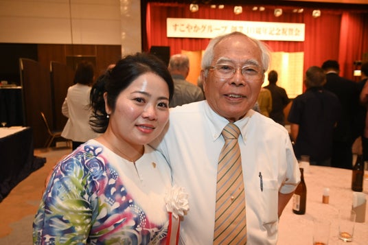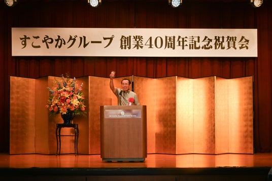 すこやかグループ(以下、当社)は、2024年7月1日をもって創業40周年を迎えました。この周年を記念して、7月7日に沖縄ハーバービューホテル(沖縄県那覇市)で記念祝賀会を開催いたしました。「支えてくれたあなたへ かわらぬ愛と感謝を。ご縁と笑顔で歩む未来。」をメインコンセプトに、記念動画やポスター、社員一人ひとりの描く未来を表現したパネルを公開しました。また、今年4月には、保険薬局や介護福祉事業、保育事業、サロン事業を運営する株式会社薬正堂の代表取締役社長に、創業社長の長女である宮里早香が就任しました。新社長は、来賓の皆さまへのご挨拶として、40年に渡る感謝の意と、未来に向けた抱負を語りました。