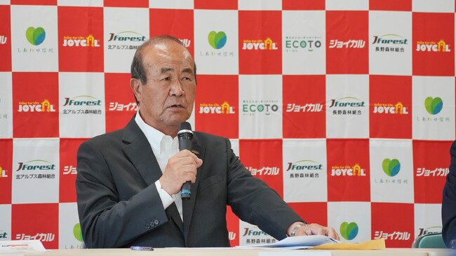 クルマが排出するCO2を森林事業でオフセットするプロジェクト”ECOTO”についての説明の中で、早川からは「今回の取り組みについて長野県を始め、両組合様の協力があるからこそ可能になります。どれだけの方がこういったサービスに興味を持っていただけるのか。欧米ではSDGsの取り組み無くしては、商品やサービスの展開が難しい一方で、国内に於いてはまだまだであると思っていますが、今回の取り組みが私自身も壮大な社会実験の一つであると捉えています。どの程度のユーザーが環境への取り組みに興味を持っていただけるのか大変興味がございます。まずは、全国約580店舗のジョイカル店の顧客の方々に情報発信していきたいです。」と意気込みを語りました。