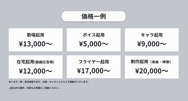 起用したキャストを活かした、動画や音声・楽曲といったメディアコンテンツの制作までも、本サービスでワンストップで提供いたします。