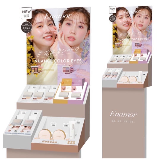 Enamorの代表作ニュアンスカラーアイズから、24SS”花果実シャドウ”が数量限定で2024/4/5より各取り扱い店舗・オンライン店舗にて同時発売を開始。初のフロア什器の展開で即日完売を記録。