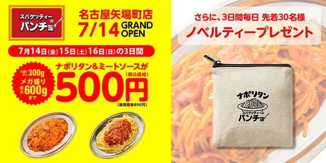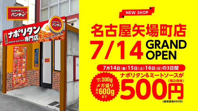 株式会社パンチョ(東京都武蔵野市:CEO 野尻圭介)は、2023年7月14日(金)に「スパゲッティーのパンチョ 名古屋矢場町店」を新規開店いたします。パンチョの愛知県への出店は今回が初めてとなります。また、名古屋メシとしておなじみのナポリタンと溶き卵を鉄板で焼いた「鉄板パンチョ」も名古屋矢場町店限定メニューとして新発売。昔懐かしい味わいとボリューム、トッピングでカスタマイズする楽しさを、愛知・名古屋のみなさまにも体験いただき「改めてナポリタンはうまい」と実感いただける機会を提供してまいります。