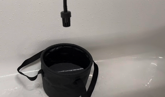 本体を折りたためば、バケツの中にパーツ一式収納できるほどコンパクトなので、アウトドアアクティビティの際も、車のトランクやバッグに入れてお気軽に持ち出すことができます。洗浄する時は、洗い流しだけなので本体とノズル・ホースだけ、そして洗剤を使用する場合は洗剤用ボトルを接続るだけで使用できるので、簡単に組み立てが可能!