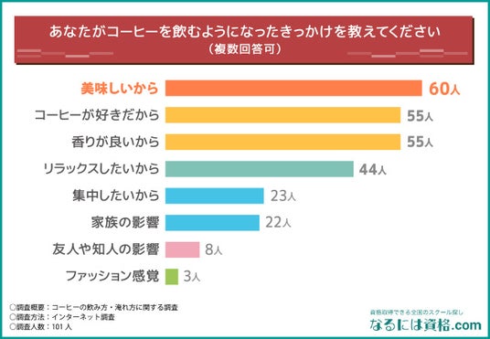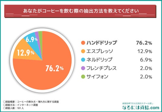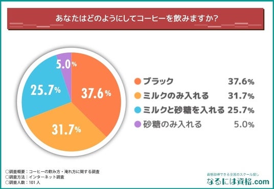 なるには資格.com(株式会社Nanea 本社:福岡県、代表取締役:石丸大輔)は、全国20代~60代の男女101名を対象に、「コーヒーの飲み方・淹れ方」に関する調査を実施しました。