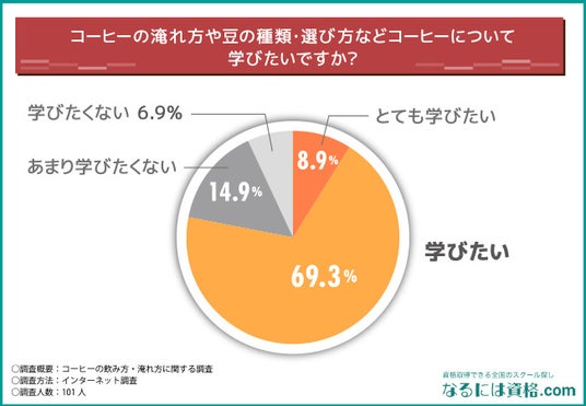そこで次に、「コーヒーの淹れ方や豆の種類・選び方などコーヒーについて学びたいですか?」と質問したところ、