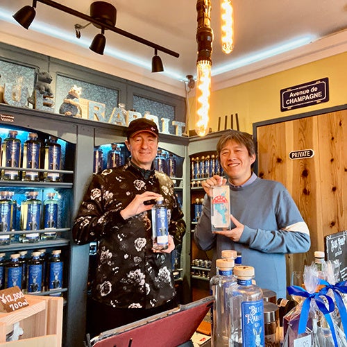 東京都大田区田園調布本町57−2、環八通りに面したブルーラビット蒸留所は、スコットランドから来日したマーク・スミスさん(Mark Lawrence Smyth)が運営されています。全てをお一人でDIYで作り上げた蒸留所兼店舗は、マークさんの探究心の深さと技術力の高さがすぐに確認できます。これまでにも、ユニークなフレーバーのジンを5種類、さらにウォッカとラムを製造販売されてきました。昨年は、日本を代表するボタニカルのゆずや檜を活用したジンで、IWSC銅賞を獲得されました。PBでの製造も受託しており、昨年から石川県珠洲市上戸町のNTGと共同で、能登を代表するスピリッツの開発に取り組みました。マークさんの高い技術力が最も認められるのはピュアでクリアな蒸留酒ウォッカが最適と判断し、能登のボタニカルを代表する月桂樹の葉を活用して香り付けしたフレーバード・ウォッカの開発に取り組みました。