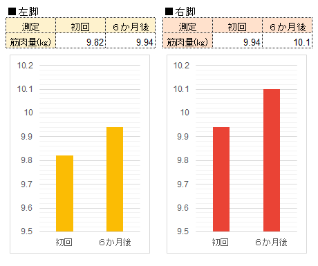 左脚平均筋肉量:プログラム実施前9.82kg→プログラム実施後9.94kg
