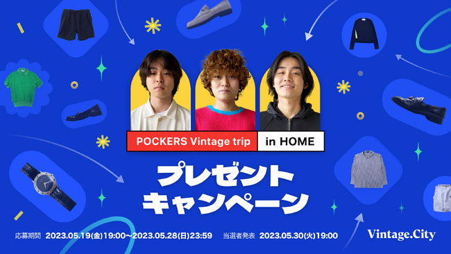 Vintage. Trip #4の動画で、ポーカーズが厳選した古着アイテムを抽選でプレゼントいたします。プレゼント応募詳細は5月19日(金)19:00にVintage.Cityアプリ内で発表いたします。