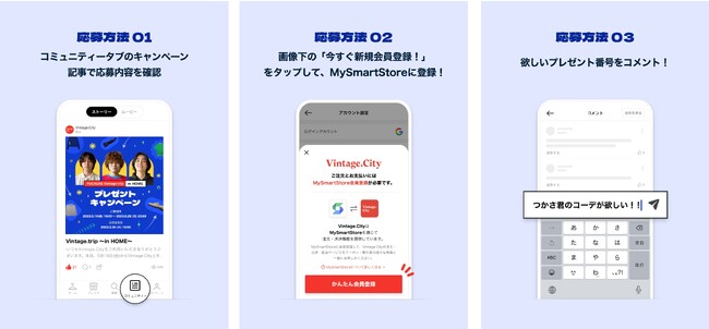 STEP1.ヴィンテージ・ファッション・アプリ「Vintage.City(ヴィンテージ・シティ)」内の「コミュニティ」ページに公開される「キャンペーン記事」で応募内容を確認。