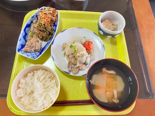 お米はスコレーで栽培した自然栽培のお米。調理担当の方が、麹発酵料理を中心にした給食をつくってくださいました。