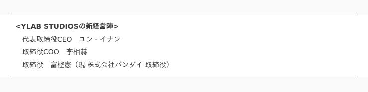 今回の資金調達を通じて仲間となったバンダイは、IP事業におけるグローバルリーディングカンパニーであり、YLAB STUDIOSのオリジナルIPを活用した二次IP事業の強力なパートナーになっていただけると確信しています。オリジナルIPの制作から流通、そして二次IP事業まで一貫して事業を行うことで、グローバルコンテンツプロバイダーとして成長してまいります。引き続きご関心とご協力をよろしくお願い申し上げます。