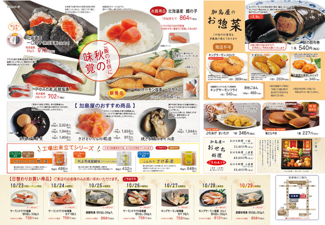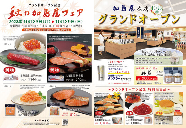 なお、10月23日から29日までの期間、グランドオープン記念「秋の加島屋フェア」を開催し、
