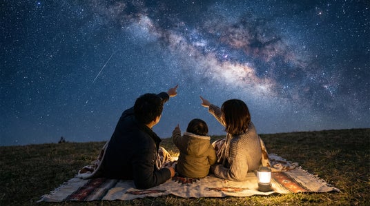 宇宙想で想いを宇宙へ届け、家族で夜空を見上げるイメージ