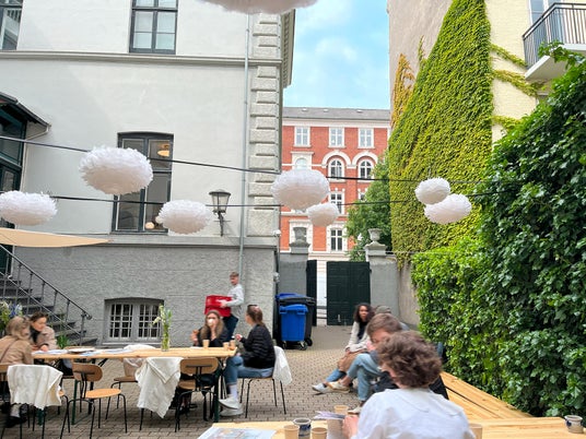 その後は、ニューハウンに近い運河沿いのショールーム、UMAGE(ウメイ)を訪ねました。"努力"という意味のデンマーク語を冠するUMAGE(ウメイ)は、北欧のデザインの伝統にインスパイアされたデザインでありつつも、機能的で誰にでも手の届く"affordable"なモノづくりをコンセプトにし2008年に生まれたブランドです。蔦の緑が這う建物の白い柱の間で大きな扉が開かれ、中庭の中空に羽でできたランプが浮かび、人々を迎え入れている空間は印象的でした。