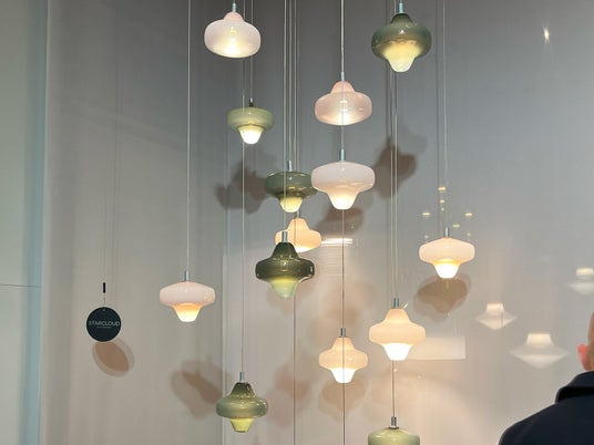 BROKIS(ブロッキス)の照明"Star Cloud"。ゆっくりと灯りの強さを変えていきながら来場者を迎える