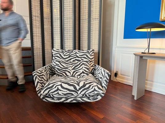 品質の高さを誇るラウンジチェア。大胆なファブリック
