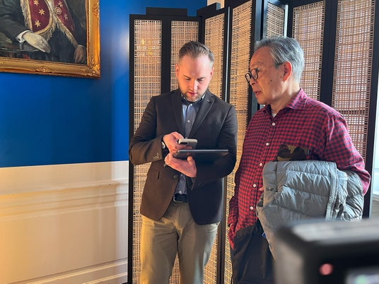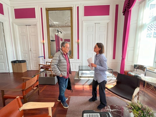 次のフロアでは弊社が直接取引をしているメーカー、Man of Parts(マン・オブ・パーツ)を訪問。麻布台ヒルズにお住まいのお客様よりご注文いただいたものと同じ作品の展示もあり、まさに宮廷の一室といったレイアウトが施されていました。Director of Salesの方と直接顔と顔とを合わせ納期の確認など安心できるやりとりを行える機会は素晴らしいものです。