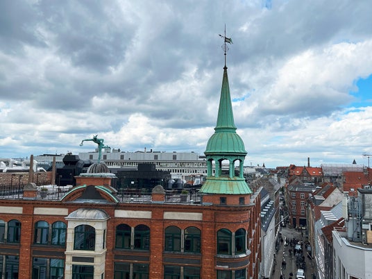 その上はついに最上階。ここからの眺めは圧巻でした(この記事の一番最初の写真をご覧ください)。高いビルの無いコペンハーゲンの街並みが立体的な雲の下に整然と、童話の一ページのように並んでいます。18世紀後半に建てられたというこの邸宅。貴族たちはこの眺めを一望しながら港町の風を浴び、毎夜ワインを傾けていたかもしれません…。この展示場は、そんな光景が一瞬ふっと浮かぶほどに、現実を離れたような空間でした。