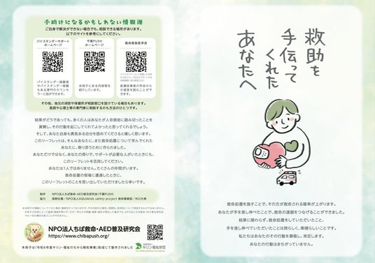 NPO法人ちば救命・AED普及研究会(千葉PUSH)でバイスタンダー(救助実施者)の心理的ストレスに対する啓発資料「救助を手伝ってくれたあなたへ」を公開しました。
