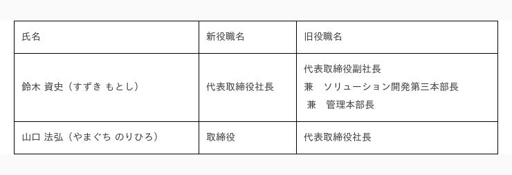 この度、新たな経営体制の下で更なる進化と企業価値向上を図るため、開発責任者として新ソリューション開発に取り組んできた現代表取締役副社長の鈴木資史を2024年4月1日より代表取締役社長とすることといたしました。