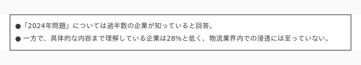 物流業界に迫る「2024年問題」「2024年問題」の理解度は30%、成果が出ている企業は10%未満。上場企業でも約3割が「何もしていない」と回答。